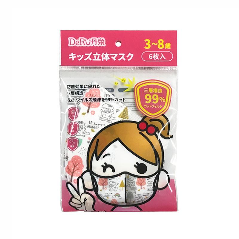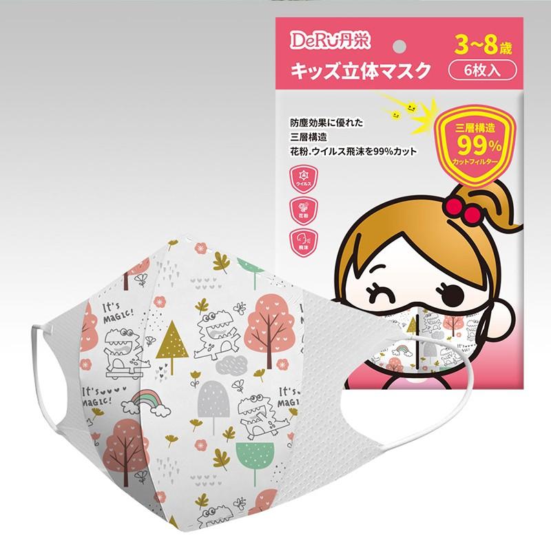 DeRU丹之荣三层立体儿童口罩3-8岁女 粉植物恐龙(6枚)
