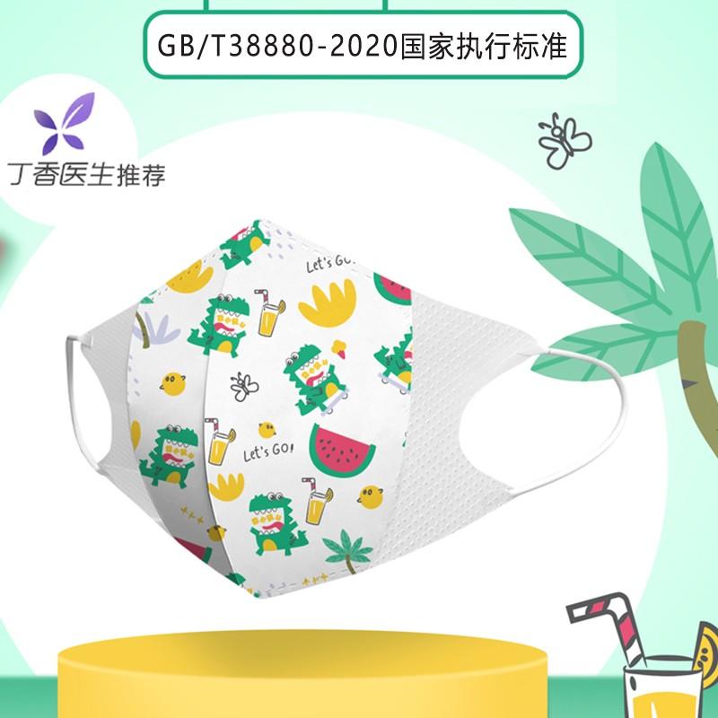 DeRU丹之荣三层立体儿童口罩0-3岁男宝宝绿西瓜恐龙(6枚)