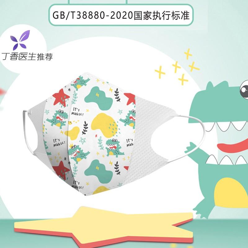 DeRU丹之荣三层立体儿童口罩0-3岁男宝宝 绿星星恐龙(6枚)