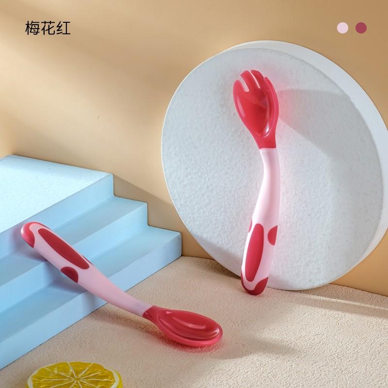 国内发货 英氏YeeHoo#英氏蘑菇头温感变色训练叉勺梅花红
