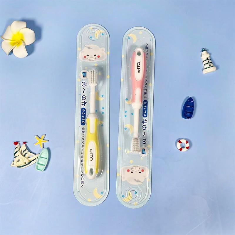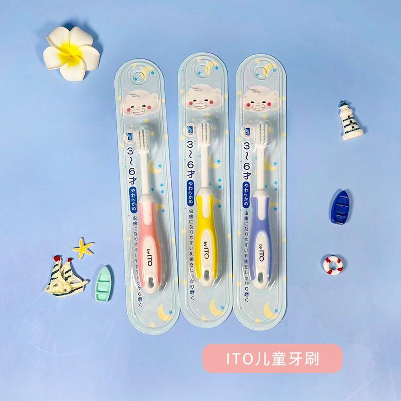 艾特柔ITO儿童软毛小刷头牙刷手动牙刷 蓝粉黄色 颜色随机发1支装